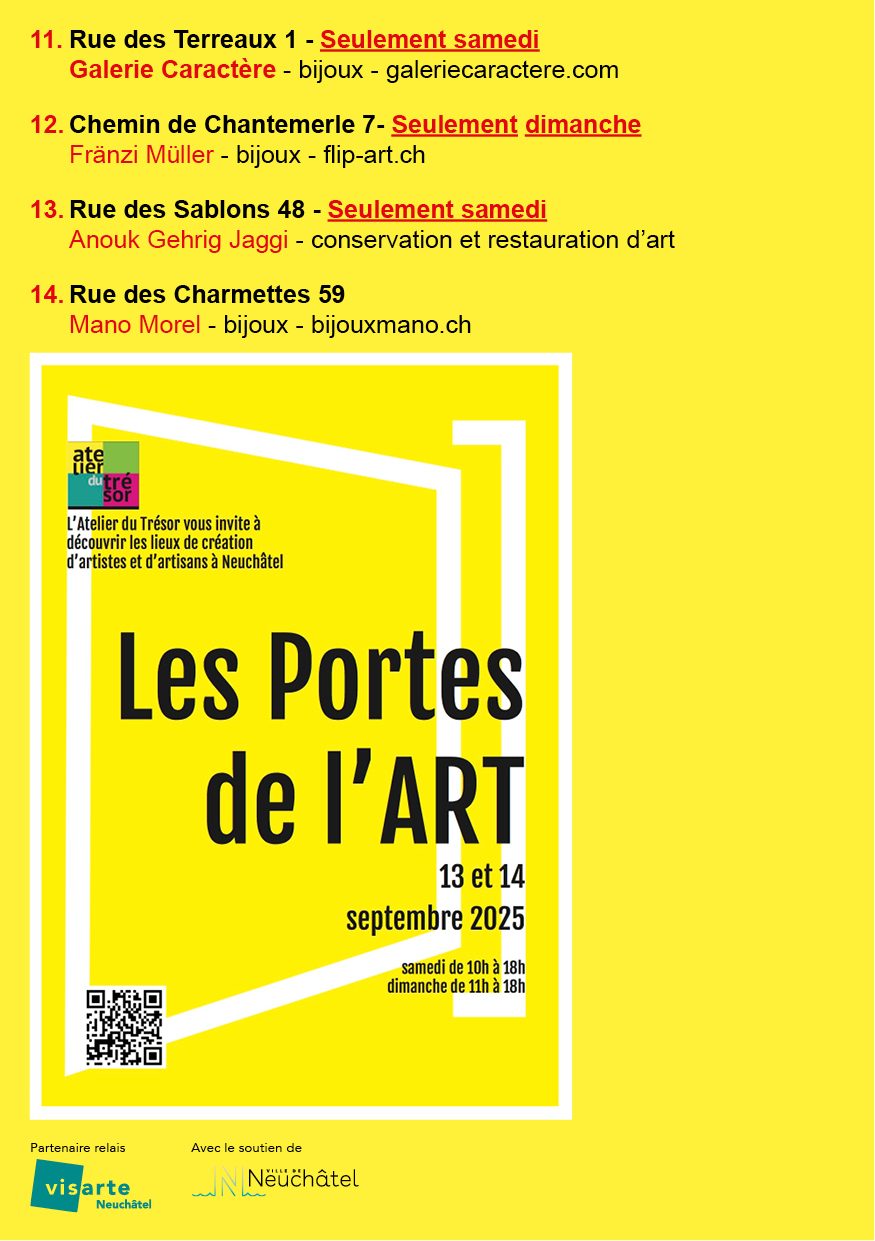 Le 13 et 14 septembre auront lieu Les Portes de l’Art 2025, et cette année, la Boîte Noire y participe ! Je vous invite à passer Rue de l’ Écluse 56 à Neuchâtel pour y découvrir mon atelier le samedi de 10h à 18h et le dimanche de 11h à 18h. Pour l’occasion, je présenterai une série de tirages noir et blanc et une série de tirages couleur.